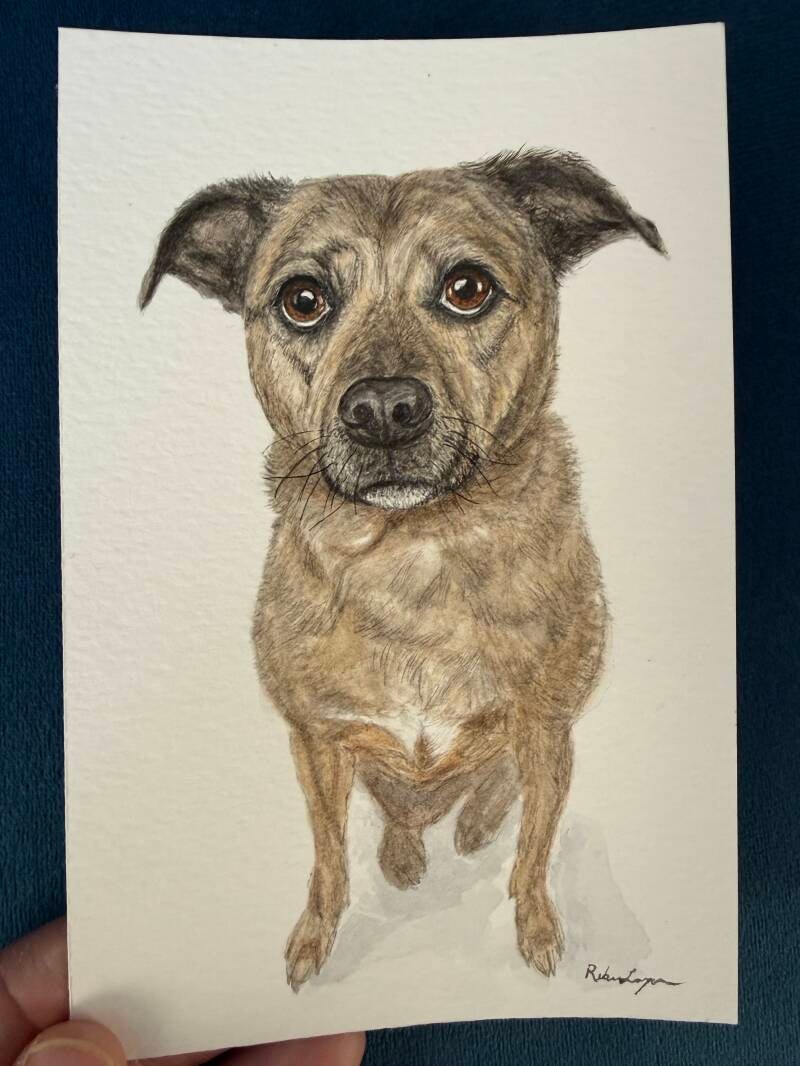 Hand painted portrait of your pet painted on professional cold-press paper, created from your photos with care and detail. Each piece is original artwork.